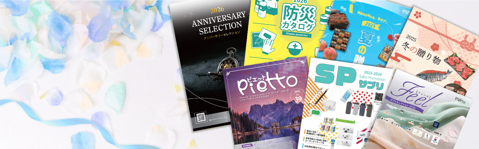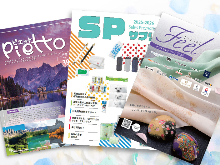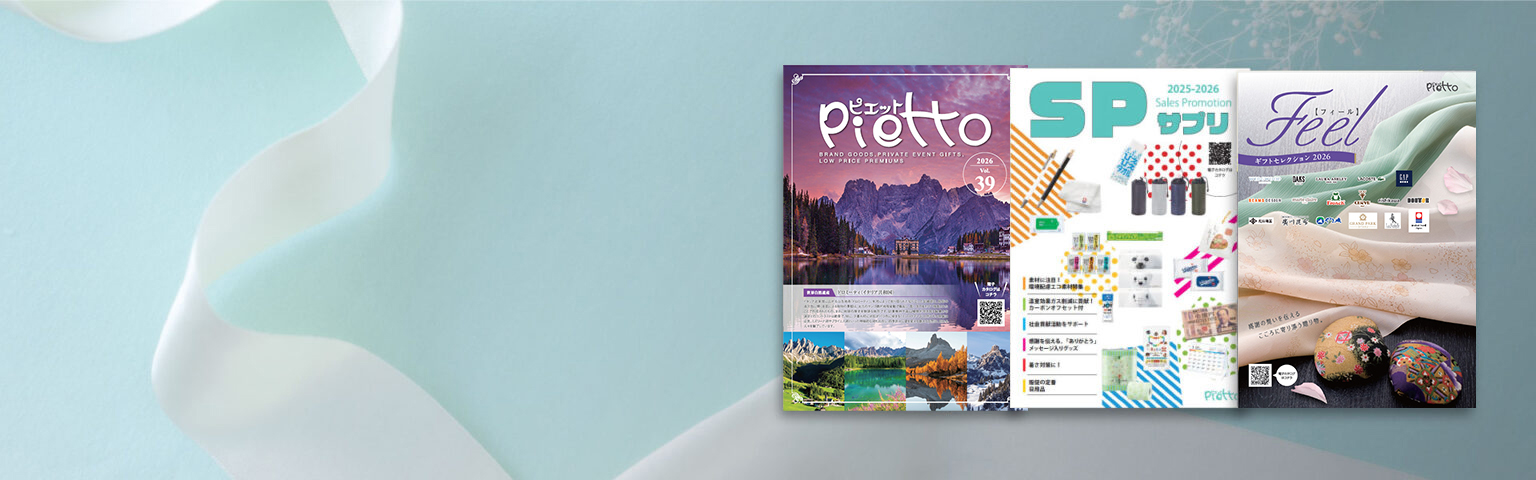 国内メーカー約700社との取引によるギフト商品および販促商品の企画販売や総合カタログ『ピエット』他、各種ギフトカタログの共同発行を行っています。